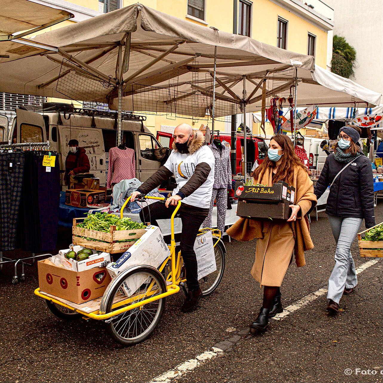 Ogni giorno, a fine mercato, l’associazione "Recup" raccoglie e seleziona, con l’aiuto dei commercianti, la frutta e la verdura rimaste invendute, lasciandole a disposizione di chi ha bisogno.